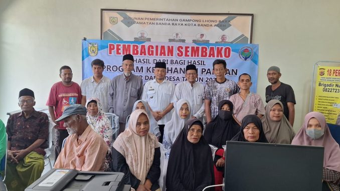 Keuchik beserta Tokoh Masyarakat Membagi Sembako Hasil Ketahanan Pangan